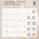 ※ご予約可能な日時は、お手数をおかけしますが、ブログよりご確認ください。
