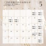 ※ご予約可能な日時は、お手数をおかけしますが、ブログよりご確認ください。