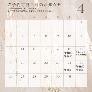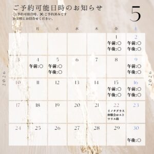 5月までの予約カレンダーを更新しました