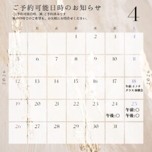 5月までの予約カレンダーを更新しました